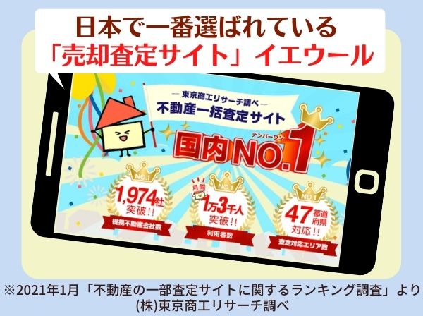 焦って売約し、後悔しないように、 日本で1番、「家を売りたい方に選ばれている売却査定サイト」イエウールで「あなたのうちの相場」を査定してみませんか!?
