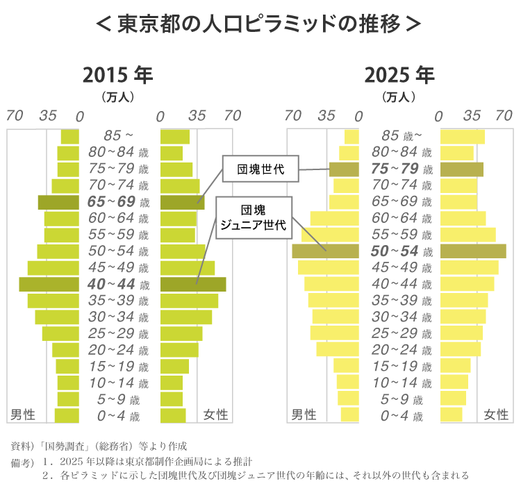2015年の時点で「団塊ジュニア世代は、40~44歳」2025年では「50~54歳」!!不動産購入を検討する柱となる30代を優に超えています。